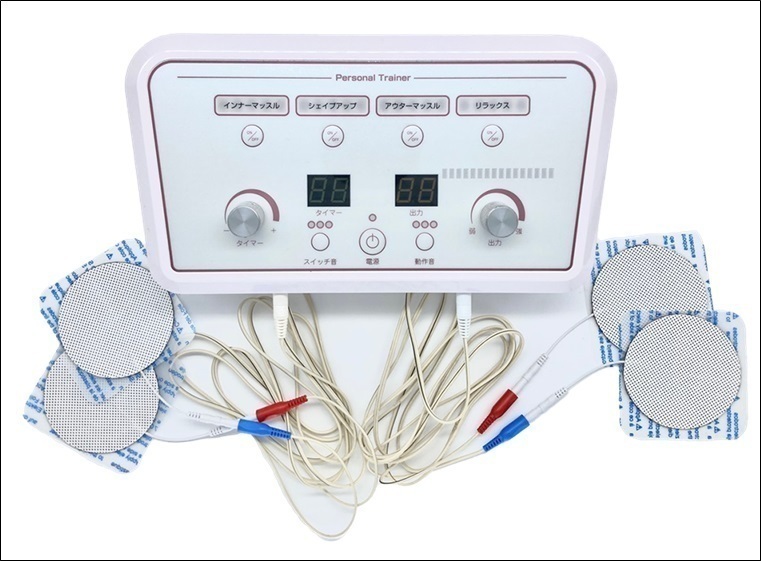 付属品:ACアダプタDCプラグ、パッド70mm4枚×3セット、3mm4枚×1セット、取扱説明書(保証書)、トレーニング説明書、キャリーバッグ