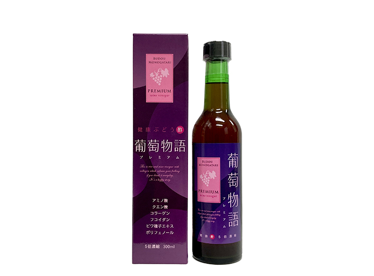 高級果実の巨峰を素材に生まれたワインから、さらに発酵を進めた特別なぶどう酢が誕生。木樽での静置発酵による醸造酢(米酢)をブレンドし、さらにコラーゲン、ローヤルゼリー、フコイダン・ビワ種子エキス等を加え、各種成分の栄養バランスを考え開発されました。