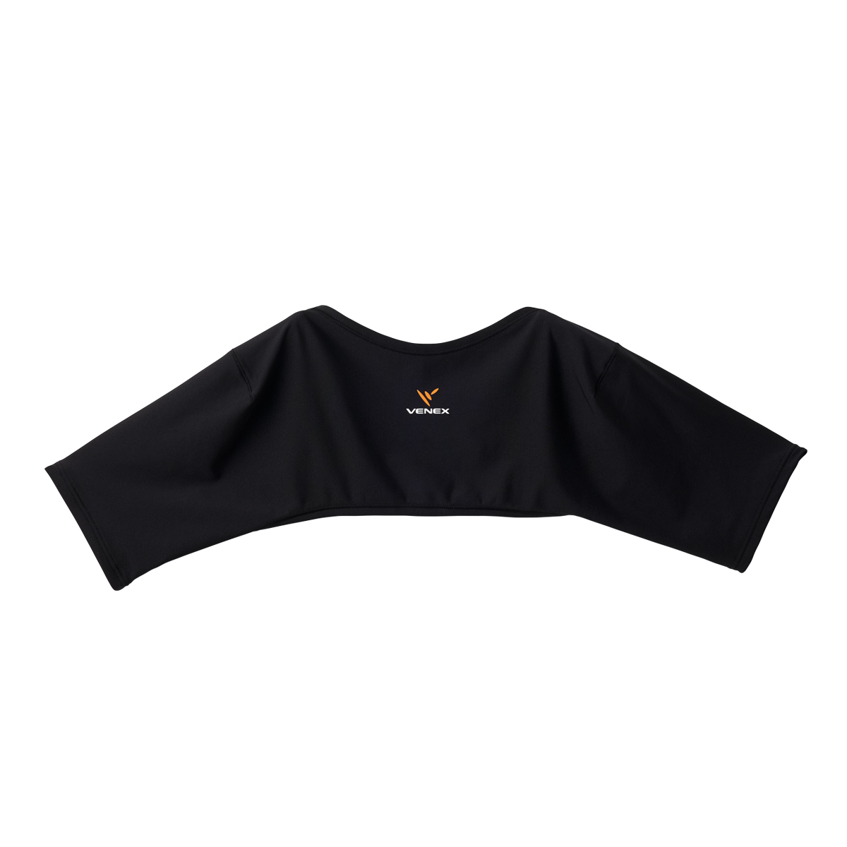 上腕から肩を立体的なパターンでカバー。お洋服の下に着用いただいても、シルエットの邪魔をしません。